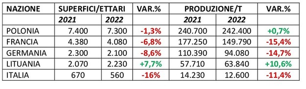La Poland maintained the same volumes of the previous year, while Lithuania increased both cultivated areas and yields.