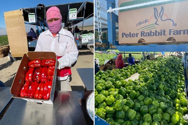 Green bell pepper production started early this week in Coachella. “The fields look really good right now, it would be difficult to know that a tropical storm rolled through in late August,” says Garret Powell of Peter Rabbit Farms. “We’re seeing larger fruit than normal for the fall--more like jumbo and extra large sizes. Usually on the crown pick there’s limited choice and that’s still consistent with what’s happening. We’re getting mainly number one peppers.”