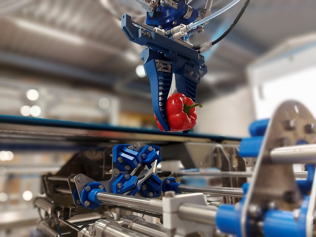 "No people work on our bell pepper line anymore," begins Machiel Honig, co-owner of ZTI Smart Machines. This Dutch company develops machines for different sectors, including fruit and vegetable processing. "It tips over crates of bell peppers that are eventually processed into half of quartered, de-cored bell peppers. In this new processing line, cameras inspect the bell peppers, which a robotic silicon gripper then picks up."