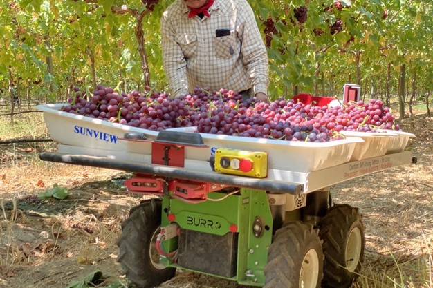 A Burro robot assisting harvest in a vineyard. Image: Burro.