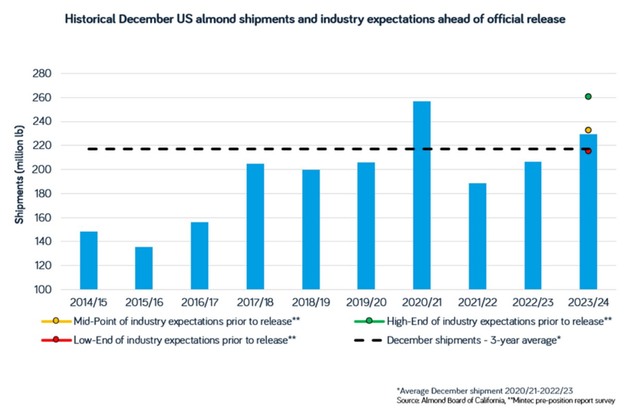 Shipments for December 2023 totalled 229 million pounds, the second highest December figure on record and a 11.2% year-on-year increase.