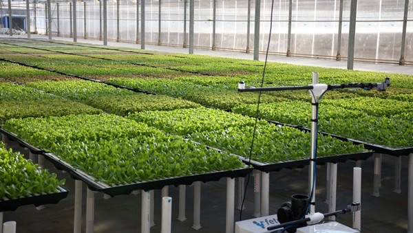 Off-the-shelf robots with customized attachments are used to tend to and harvest the plants, delivering precise levels of water and nutrition for healthier plants. "All production is done in a clean, controlled greenhouse, reducing damage and quality variations that occur in conventional outdoor farming. Products are packed on-site immediately after harvesting, using 100% post-consumer recycled plastic. Instead of conventional chemical pesticides, the company uses beneficial insects, natural oils, and other pesticide-free practices."