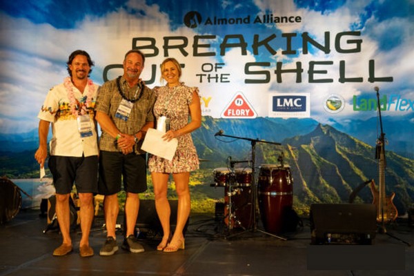 Steve Koretoff was awarded Member of the Year at the 2024 Almond Alliance Convention in Hawaii. Left to Right: Blake Vann, Chairman of the Almond Alliance; Steve Koretoff; Katie Staack, Vice Chair of the Almond Alliance.