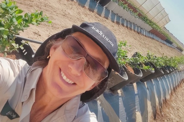 Beatriz Tubino, Manager of new business for Agroextiende Peru in their blueberry test blocks.
