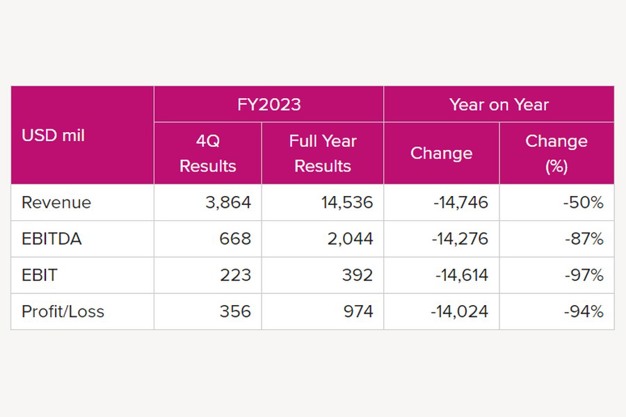 Network Express (ONE) released the Financial Result for FY2023 (from Apr 2023 to Mar 2024). The revenue for FY2023 was US$14.5 billion, down 50% from the last year, with net profit of US$974 million (YoY -US$14.02 billion).