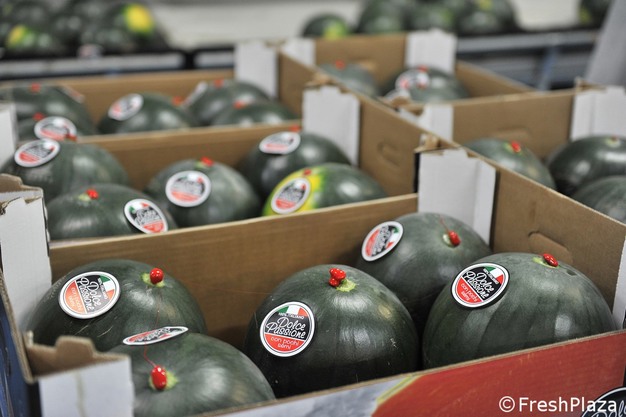 Watermelons from the "Dolce Passione" consortium, which was set up in 2023 and now gathers five partners, usually become available in early May. Four of the partners, i.e. Alma Seges, Cico-Mazzoni, Lorenzini Naturamica and Ortofrutta Castello, are involved with the production and commercialization of the fruits while the fifth, Lamboseeds, produces the seed of the Giotto variety that originated the consortium.