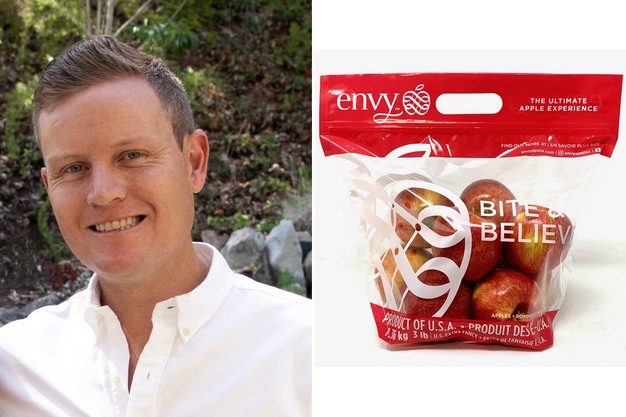 Left: Piers Hanbury; right: a bag of Envy apples, a variety that continues to show growth in the apple category.