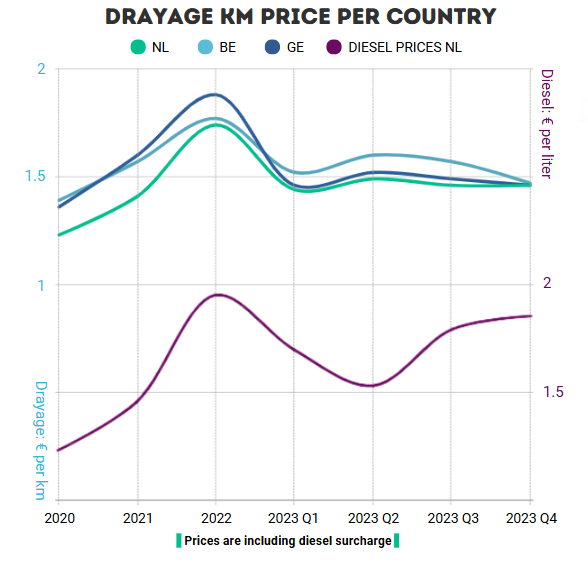 Once comprehensively vetted, carriers pay a fixed €69/month to remain active on the platform. They can freely view and bid on orders, after which shippers make a selection. This system often provides market-based prices per kilometre. If transporters are already in the area and can collect a container on their return trip, that price may be even lower.