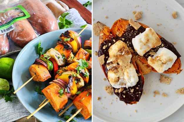 The brand is sharing recipes like Sweet Potato Kabobs (left) and Sweet Potato S'mores (right).