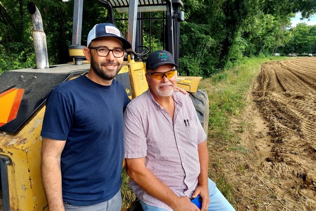Lucas Conran (left), Lipman farm manager, and Greg Church (right), previous owner of Jones & Church. Photos: Jones & Church Farms