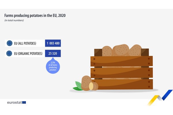In 2020, 25 000 farms in the EU produced potatoes according to organic production methods. This represented only 2.5% of all farms producing potatoes. Austria had the highest share of farms producing potatoes organically (25.6%).