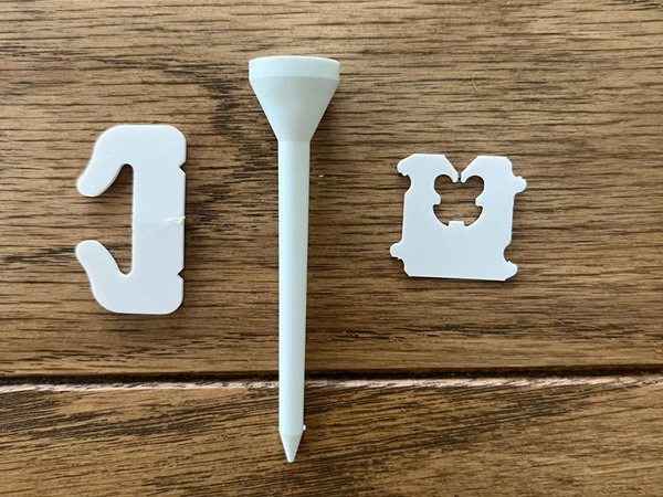 Cape Town-based Mouldex manufactured the first compostable agriclips (left) and the golf tee (middle) for The Compostable Company.