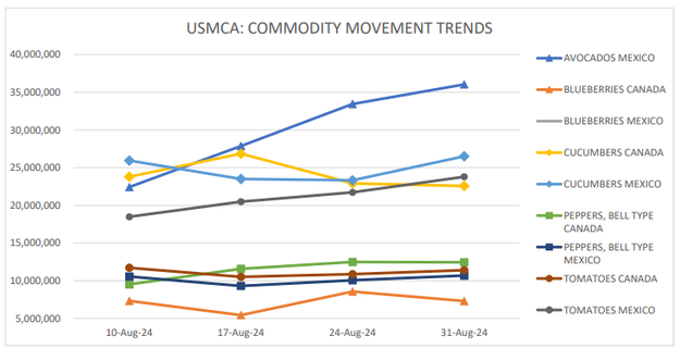 This report provides trend analysis of the volume and prices of Seasonal Perishable commodities. Volume represents current week, and prices represent open (spot) market sales by first handlers on product of generally good quality and condition unless otherwise stated and may include promotional allowances or other incentives. The charts provide graphic representation of the volume and prices of the major commodities this week based on seasonal volume.