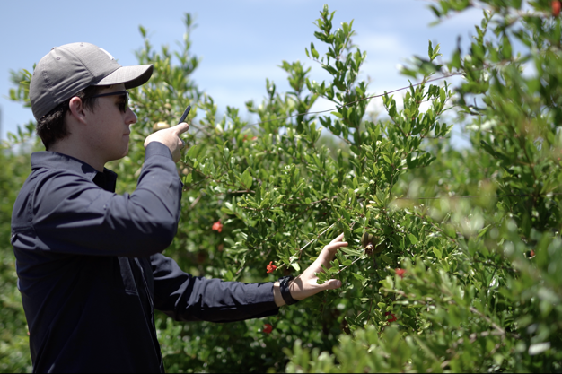 Aerobotics' Brett Agiotis sizing pomegranates with TrueFruit during ground-truths (photo: Aerobotics)