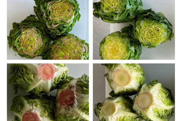 Left: Romain lettuce P +8 water rinse Right: Romaine lettuce P +8 with Food freshly