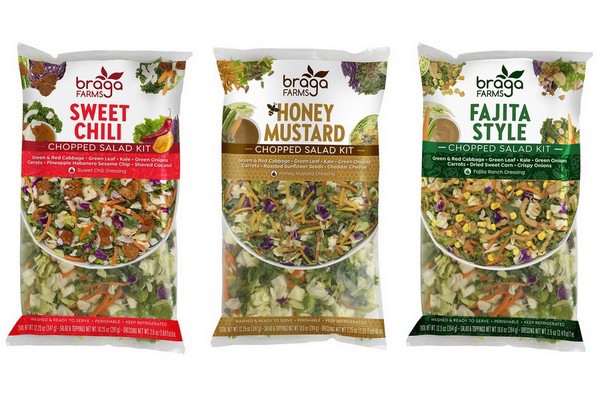 The Braga Farms chopped salad kit line debuted last year at the trade show and is extended now with three flavors: Fajita Style with crunchy dried sweet corn and crispy onions; Sweet Chili with crunchy pineapple habanero sesame chips; and Honey Mustard, a blend of sweet and tangy flavors mixed with crunch from sunflower seeds.