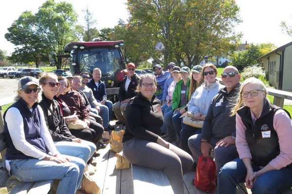 The class tours research projects via wagon at the Rutgers Snyder Research and Extension Farm.