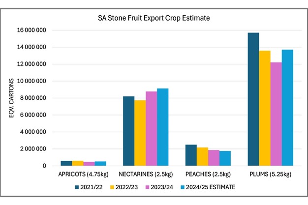 Apricots: Projected to increase by 9%, with an estimated crop of 523,000 cartons (4.75 kg equivalent).