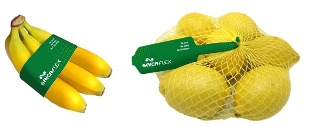 Left: Banana banderoles from Saica. Right: Sustainable labels.