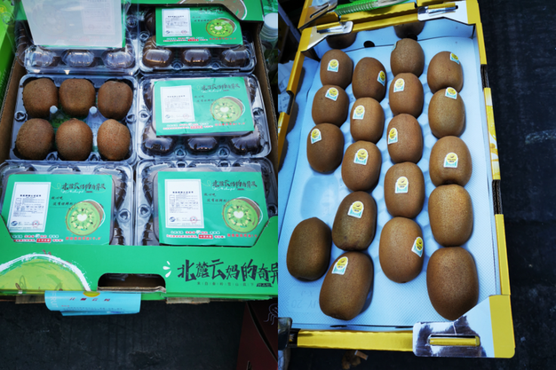 Chinese kiwifruits (left: green kiwifruits; right: gold kiwifruits)