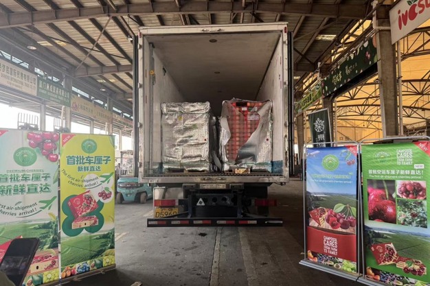 Almost two weeks earlier than last year, Camposol has launched this year's cherry season for the Chinese market. The first shipment from Chile arrived in Shanghai on November 11th and was quickly distributed across various channels. The cherries, sourced from the O'Higgins and Maule regions, are of the Santina and Lapins varieties, both highly valued by Asian consumers.