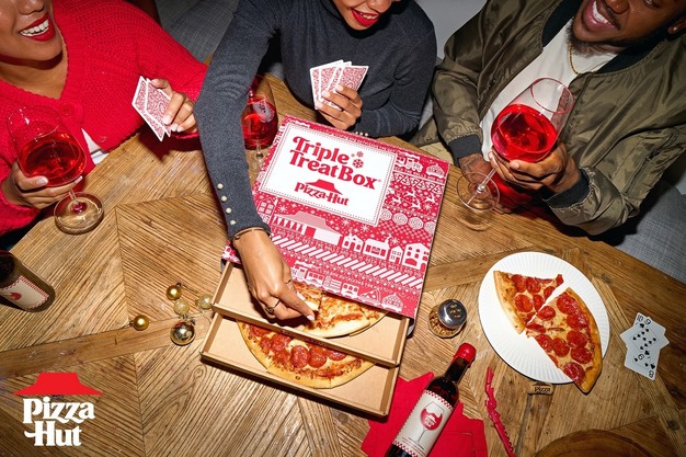 "The holidays are a time for many gatherings, but often the gift of a bottle of wine can feel expected. Why not be the one to bring the pizza party with the gift of pizza wine and a Triple Treat Box designed to ignite fun and conversation," said Pizza Hut's Director of Advertising, Elyse Slayton. "As a brand that has pioneered many firsts in the industry, we took a beloved, classic pairing of pizza and red wine and flipped it on its head as we aim to spark intrigue and create a more memorable holiday pizza party."
