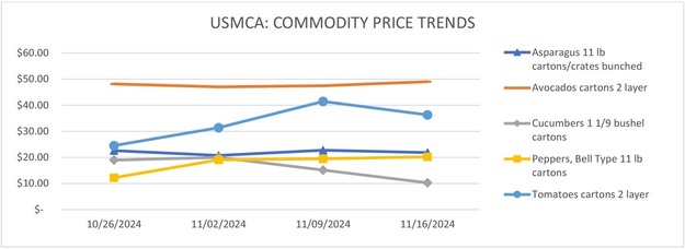 Movement from Mexico's crossings through Texas is expected to decrease slightly. Trading of 32-40s is active, while others are moderate. The prices of conventional 32-36s and 60-70s are higher, organic 60s are lower, and others are generally unchanged. Cartons of 2-layers Hass 32-36s (supplies are fairly light) are mostly 72.25-75.25, 40s are mostly 67.25-70.25, 48s are mostly 54.25-55.25, 60s are mostly 33.25-35.25, 70s are mostly 22.25-24.25, and 84s are mostly 17.25-18.25; organic 48s are mostly 65.25-68.25, 60s are mostly 42.25-45.25, and 70s are mostly 36.25-38.25. Extra services are included.