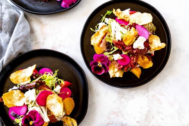 The item, which last week was a finalist for the Produce Business Innovation Award at the New York Produce Show, is unique to Babé Farms. Like Little Gem, it has a sweet crunch, mild buttery flavor, and glossy texture, though the appearance of Pink Rhône resembles more of a European-style lettuce. That is, petite in size with loose outer leaves and a tightly enveloped core. "What truly sets the Rhône apart is its intense pink color, which extends all the way to the core, ranging from wine-red to light magenta," says Hiltner, adding that it's available year-round and is versatile for salads in any format from chopped to whole leaf.