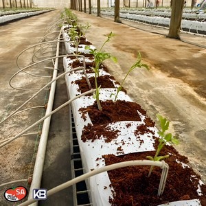 In Two Wells, the company uses high-density planting in hydroponic greenhouses for gourmet and roma tomatoes. "Our tomatoes are grown in cocopeat media and irrigated with drip systems. This method, combined with disease-resistant varieties, helps us to optimize productivity and reduce risks," Nick shares. "The high-density planting method also allows for efficient crop management."