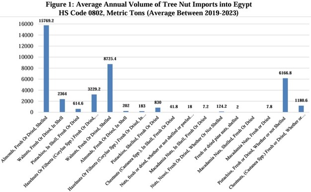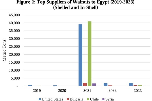 The Egyptian consumption of walnuts (and other nuts) spiked in 2021, amid the coronavirus pandemic, as a larger segment of the population was snacking on nuts due to their nutritional value. However, Egyptian walnut (and other nut) consumption levels returned to pre-pandemic levels in 2022 as nut consumption decreased due to their high price. Since 2022, Egypt has suffered from a myriad of economic challenges (chiefly, a severe shortage of foreign currency) which has challenged commodity supply chains.
