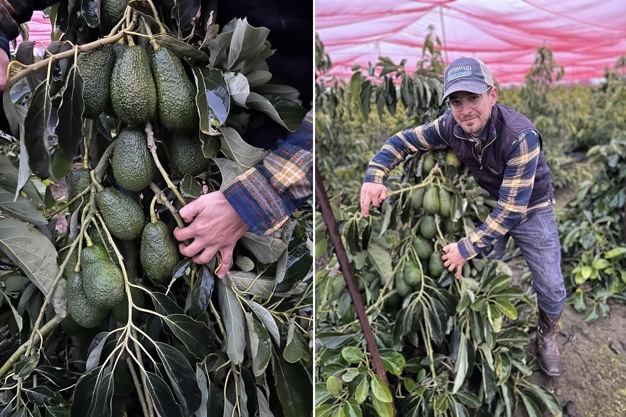 Chiles Wilson Jr. proudly shows full branches with avocados grown in the Sacramento Delta region.