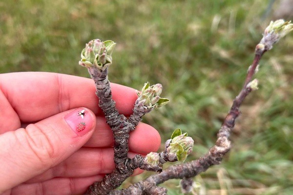 Tree fruit development is progressing steadily. In central Berrien County, apricots have reached the first white stage. Peach and nectarine buds are swollen, and the recent mild weather has increased the risk of peach leaf curl, a disease that thrives under wet conditions and temperatures between 46 and 55°F. Treatments at this stage can help prevent additional infections, and low copper applications may also assist in managing bacterial spot populations. Tart cherries are at the side green to early green tip stage in central Berrien County. Copper sprays can still be applied safely to help reduce bacterial canker in cherries.