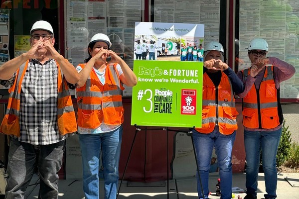 "The heart of Wonderful is our people," said Lynda and Stewart Resnick, co-owners and vice-chairman and chairman, respectively, of The Wonderful Company. "We are grateful that our colleagues across all our businesses take great pride in the work they do to foster a supportive and high-trust environment and strive to give back."
