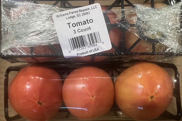 Williams Farms Repack LLC is recalling multiple tomato products under the Williams Farms Repack and H&C Farms labels. Affected items include 5x6 and 6x6 25lb boxes, combo 25lb, 4x4 and 4x5 2-layer, 60ct 2-layer, 60ct 18lb loose, XL 18lb loose, and 3ct trays with UPC 0 33383 65504 8. The impacted lot codes are R4467 and R4470. These tomatoes were distributed between April 23 and April 28, 2025, to wholesalers and distributors in Georgia, North Carolina, and South Carolina. The recall follows notification from Southeast Tomato Distributors that tomatoes supplied from H&C Farms may be contaminated.