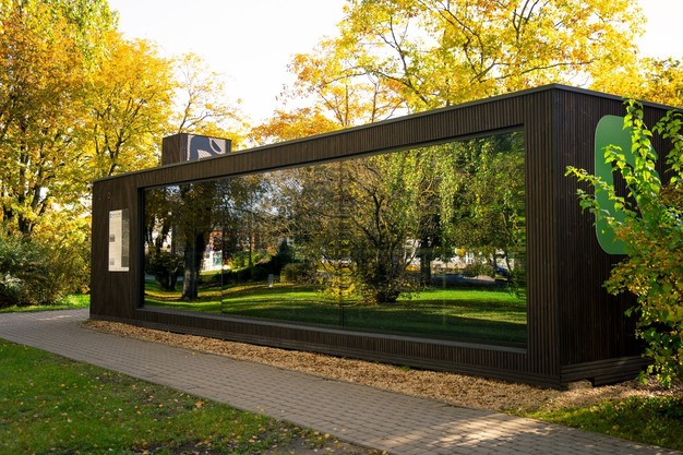 "A lot of companies donate money to plant trees, but never see them grow. We wanted to change that," says Aigars Jacuks, COO and Co-founder at CLF. Together with CEO and Co-founder Aivis Garais, the team developed a twelve-meter container equipped with a glazed ten-meter wall that allows passersby to observe the growth process in real time.
