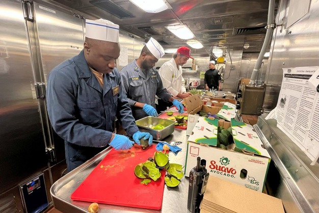 Breakfast was prepared in the ships mess with the assistance of chefs Giuseppe and Mario Lanzone of the acclaimed Peruvian Brothers restaurants and food trucks. The early morning meal featured fresh Hass avocados from Peru, known for their exceptional quality and sustainable growing practices.