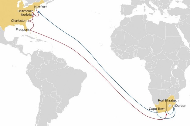 The port rotation for the new service is as follows: Gqeberha (Port Elizabeth) – Durban – Cape Town – New York – Baltimore – Norfolk – Charleston – Freeport – and back to Gqeberha.