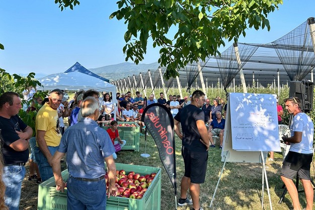 Over one hundred people participated in "Lilibet Day" on 12 August. The event took place in Falicetto, a town in the province of Cuneo in the Piedmont region of Italy. It brought together a diverse group of professionals, including producers and technical specialists. A new early apple variety was presented. The presentation took place at an event held in the variety's first commercial plant. Sanifrutta organized the event to introduce Lilibet®, an early apple variety developed by the Italian Plant Nursery Consortium (CIV). Sanifrutta is the exclusive producer and marketer of Lilibet® in Europe.