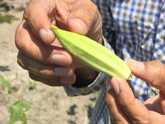 One of the top export products is okra. "It is very popular in the Netherlands, Germany, and the UK," says Bhies. "Did you know that the brown crust on some fast-food burgers contains okra powder? We grow that vegetable on 20 hectares. That's quite a lot. To plant 10 hectares, eight of us spend a whole week. That's why we are now looking for ways to do it mechanically." The seeds come from Africa via the Netherlands, harvesting starts after just two months, and continues for up to nine months after planting.