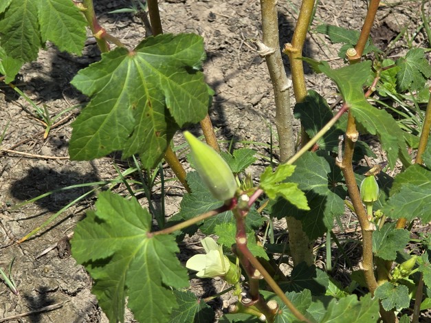 This is how okra grows on the bush