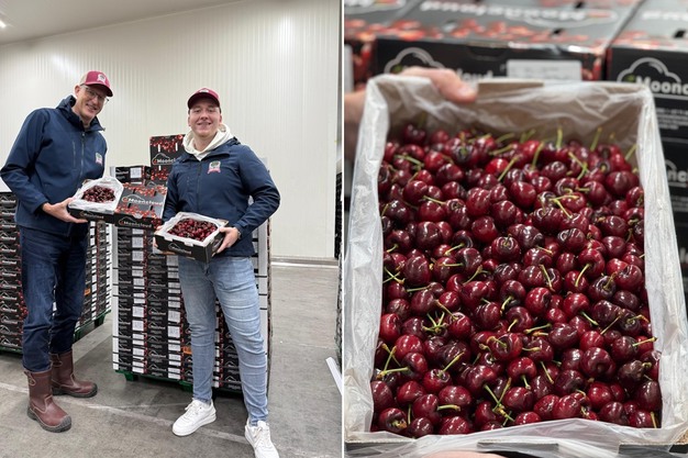 Left: Mark Preesman and Raymon Gerrets of Fruit Freshi. Right: Mooncloud cherries
