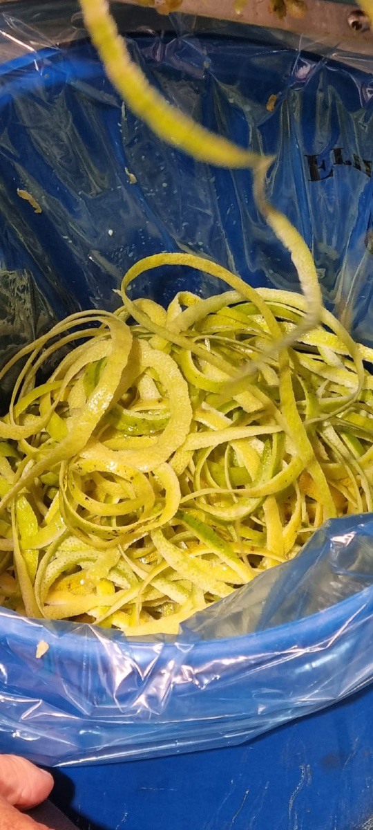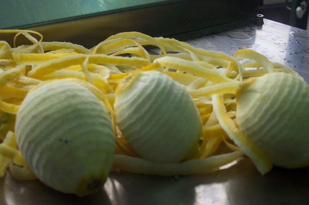 "The line, which is one of the most complete (as the customers are often those who produce the lemons themselves), consists of a brushing machine to eliminate any foreign bodies on the outside of the fruit, merry-go-round belts, and the PL6 peeling machine, which can feature 2, 4, and 8 heads. The peeling machine can process around 60 fruits per minute, and the grade of the peels (which are then infused in alcohol) varies from 1 to 6 mm depending on requirements. The machine is fed manually."