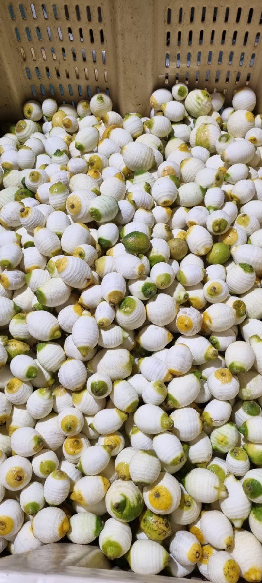 Once peeling is complete, the lemons pass through an optional cutting system, which splits them in half. The process often ends with a very natural squeezing operation, carried out by two belts that extract the organic, natural, and preservative-free juice through gentle pressure.