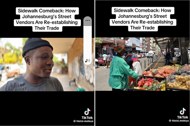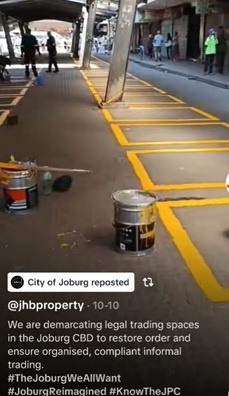 Right: Newly demarcated legal trading spaces in the Johannesburg city centre, "to ensure compliant informal trading' (source: @jhbproperty TikTok)