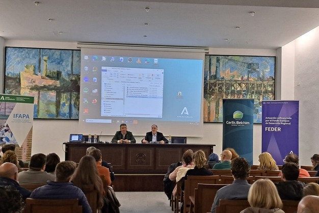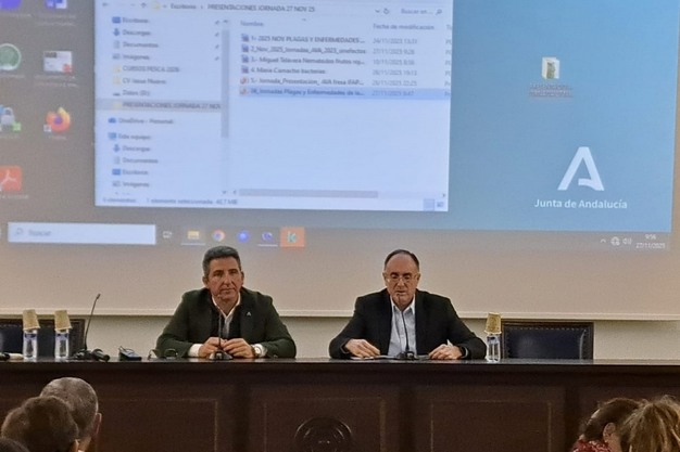 Yesterday in Huelva, a conference on pests and diseases in berry crops in the 24/25 season was opened. The event was attended by nearly 70 participants, including producers and technicians from the sector. It presented results from various trials under the Ifapa project "Management of soil biodiversity, alternatives for controlling diseases caused by soil pathogens, and improving water use efficiency in strawberry cultivation," a project co-funded by European ERDF funds.