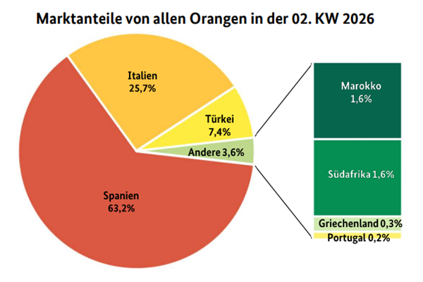 Spanish deliveries dominated the orange market. Navelina oranges were the main variety available. Navelina was also the main variety supplied from Italy. Turkey mainly supplied Washington Navel oranges: These mostly large-fruited products sold quickly thanks to their appealing organoleptic properties. According to the German BLE, supplies from Morocco, South Africa, and Greece were mainly purchased for juice production. Italian Moro and Tarocco dominated the blood orange market. Spanish and Italian Cara Cara supplemented the trade. Overall, interest was quite favorable due to the low temperatures. However, thanks to increased availability, it was easily satisfied. Prices generally remained stable over the course of the week. Only goods in poor condition had to be sold at significantly reduced prices in some cases.