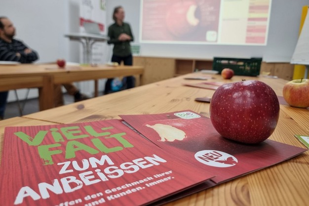 At the beginning of week 4, Bio Stars® made their debut in selected organic stores in southern Germany (primarily Baden-Württemberg and Bavaria). The aim of the new marketing concept is to introduce new, promising organic apple varieties to the market in a sensible and meaningful way. "In apple breeding, there are excellent, often new varieties that are ideally suited to organic cultivation: robust, with lower plant protection requirements and convincing in terms of taste. However, the challenge still lies in their marketing, as apples sell well under well-known variety names and shelf space is limited, meaning that these varieties often do not make it onto the market," explains Annika Leistikow from FÖKO e.V., lead partner of the new initiative.