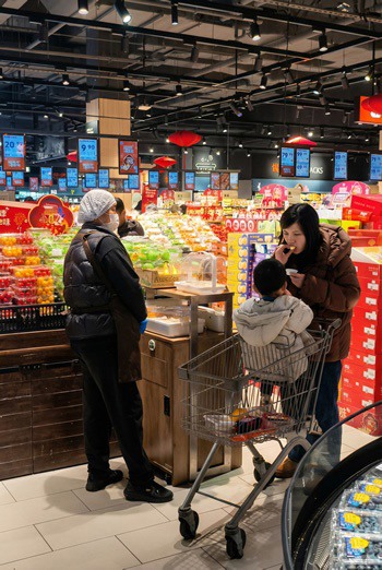 Photo right: Tessa tasting in Chinese supermarket