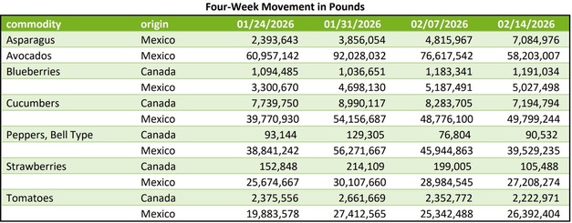 Trading patterns across key U.S. entry points show mixed dynamics this week, with softer berry markets, firmer avocado prices, and continued strength in some vegetable categories.