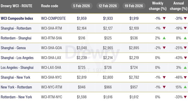 World Container Index - 19 Feb: